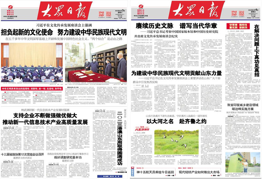 《大眾日?qǐng)?bào)》創(chuàng)刊于1939年1月1日,是山東省具性、指導(dǎo)性的大型綜合性日?qǐng)?bào),也是中共山東省委機(jī)關(guān)報(bào)。現(xiàn)為對(duì)開(kāi)八版,日發(fā)行量40多萬(wàn)份,在全國(guó)省級(jí)黨報(bào)中居前列。