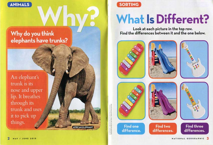 專門為幼兒設(shè)計的故事、圖片和活動。旨在啟發(fā)幼兒對于地球的好奇心和想象力。該雜志針對幼兒讀者的閱讀水平和年齡背景進(jìn)行內(nèi)容的制作,旨在通過圖像、文字、活動和游戲等各種手段,幫助幼兒逐步了解世界、認(rèn)識火車、汽車、飛機(jī)、船舶、 古董、科技、文化、歷史等知識領(lǐng)域。介紹國家地理俱樂部的,它是一個可以擁抱環(huán)境貼士和全球冒險的社交平臺,幫助幼兒更好的學(xué)習(xí)與成長。