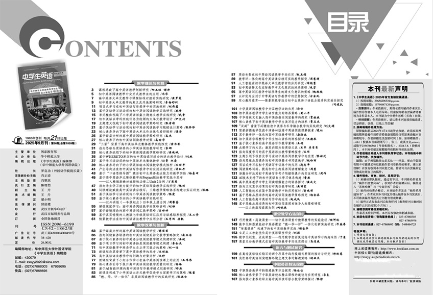 刊物設(shè)有“教學(xué)理論與實踐”“教學(xué)改革與創(chuàng)新”“課堂教學(xué)方法探討”“多媒體教學(xué)與研究”等核心欄目,聚焦英語教育前沿動態(tài)。例如,“教學(xué)理論與實踐”欄目??d單元主題教學(xué)、深度學(xué)習(xí)等創(chuàng)新模式案例;“多媒體教學(xué)與研究”則探討人工智能、虛擬現(xiàn)實等技術(shù)在英語課堂中的應(yīng)用。此外,刊物還通過“課外空間”“互動平臺”等欄目引入英語影視、歌曲、文化趣聞等內(nèi)容,增強學(xué)習(xí)趣味性。其內(nèi)容兼具學(xué)術(shù)性與實用性,既包含語言學(xué)研究、翻譯理論等深度文章,也提供詞匯記憶技巧、聽力訓(xùn)練方法等實用指南。