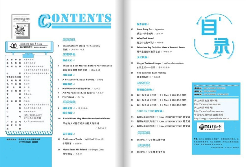 《中學(xué)生英語》定位為“高品位、高質(zhì)量、高效率”的中學(xué)英語教輔期刊,主要面向全國初中和高中學(xué)生、英語教師及教研員。其內(nèi)容緊扣中學(xué)英語教學(xué)大綱,涵蓋語言知識、技能訓(xùn)練、考試指導(dǎo)、文化拓展等多個維度,既滿足學(xué)生自主學(xué)習(xí)需求,也為教師提供教學(xué)參考??锿ㄟ^中英雙語對照、案例分析、互動練習(xí)等形式,幫助讀者提升英語綜合應(yīng)用能力,同時注重培養(yǎng)跨文化交際意識與批判性思維。